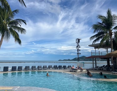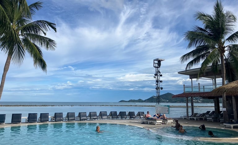 Combo Beach Hotel Samui- they had a nice breakfast buffet included in the room price. However, their restaurant and bar are very expensive, costing about 200 baht more than a neighboring bar for a mix drink and 100 baht more for one small beer. Moreover, the bar staff would not permit my mate and I, hotel guests, to drink our own beverages at the pool. To comply, we hopped onto the beach over the pool and had a bigger gathering than the bar did at the pool. I will choose a different hotel next time.