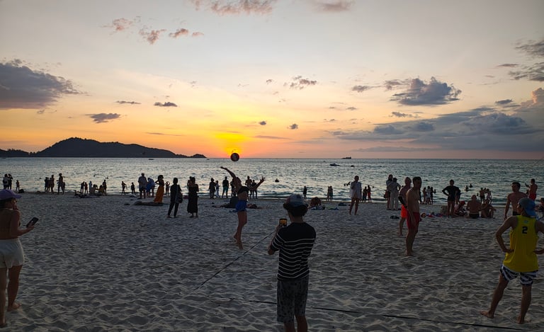 There are many places to play volleyball along Patong Beach. You can meet many different people here.